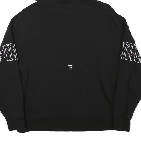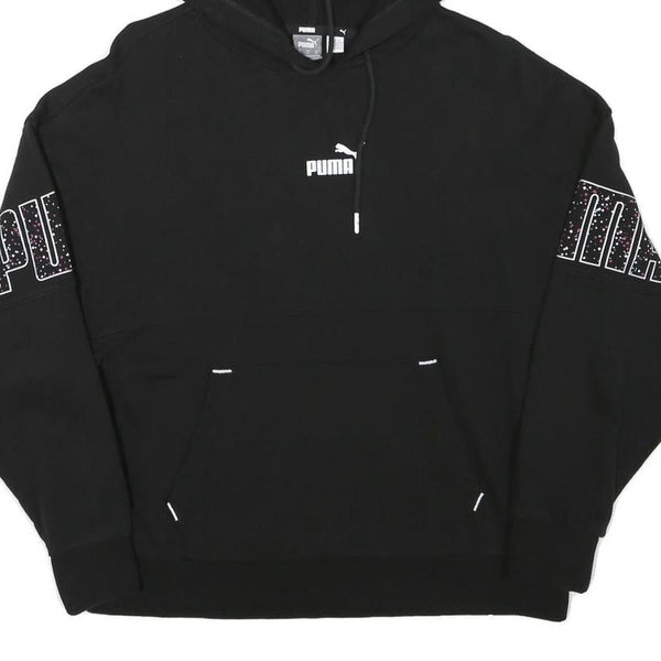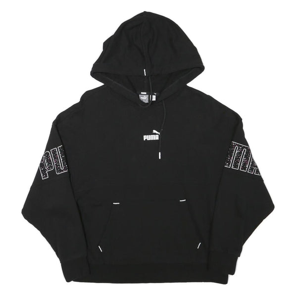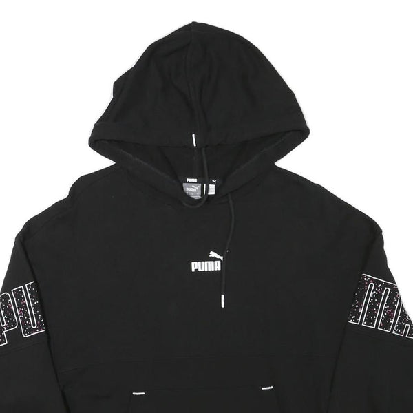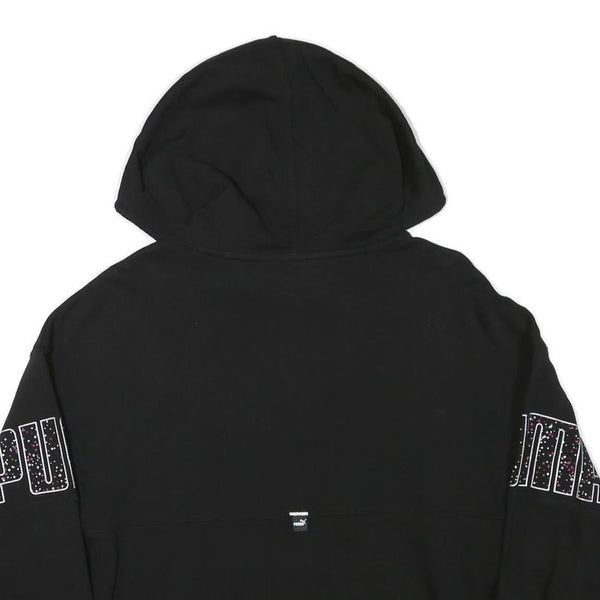 PUMA Womens Black Hoodie M Logo Graphic Cotton Blend Casual Pullover