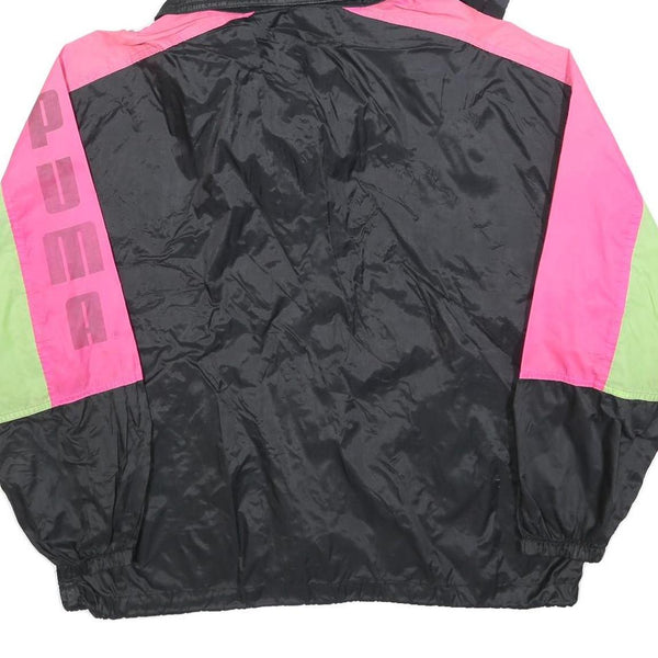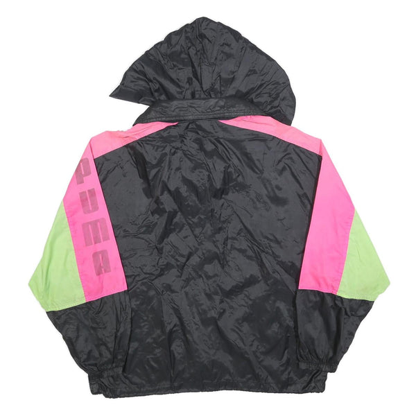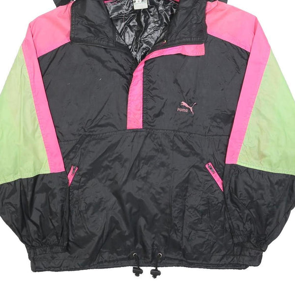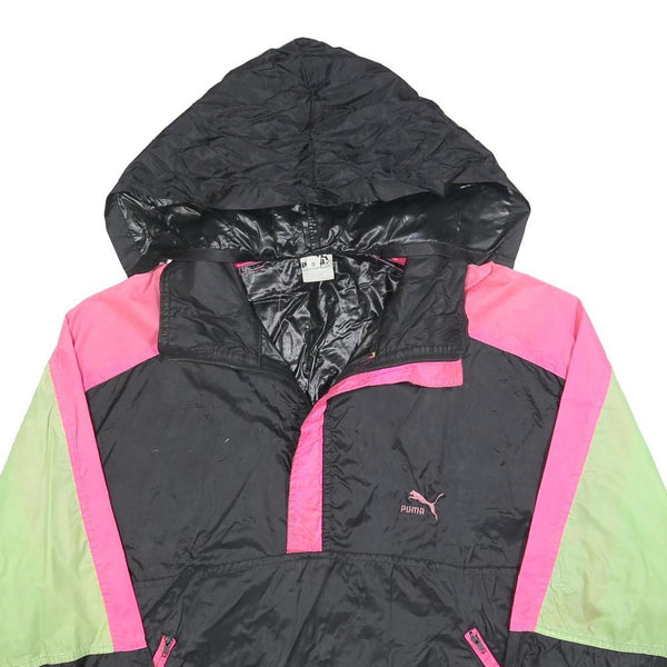 PUMA Womens Black & Pink & Green Hooded Jacket S Polyester Colourblock Zip