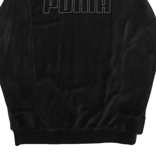 PUMA Womens Black Velvet Crew Neck UK 12 Sweatshirt Pullover Logo Embroidered