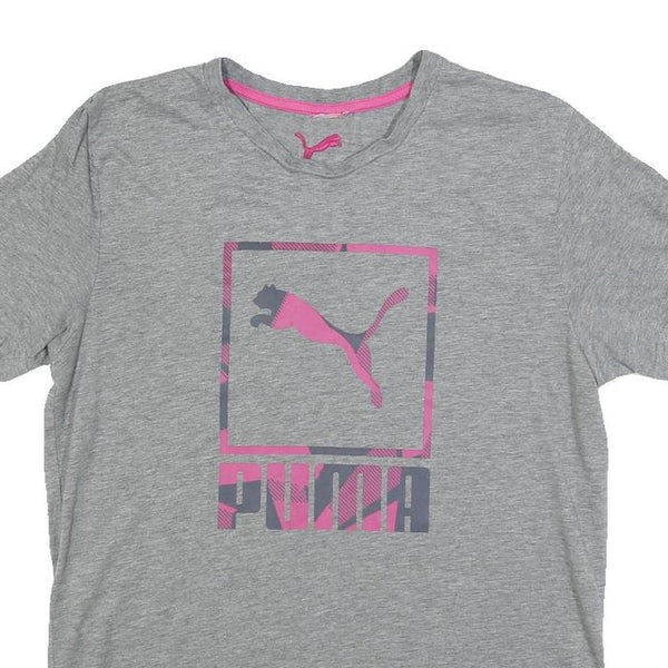 PUMA Womens Grey & Pink Graphic T-Shirt L Short Sleeve Crew Neck Casual Wear