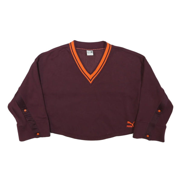 PUMA Womens Maroon & Orange V-Neck S Sweatshirt Cotton Blend Casual Pullover
