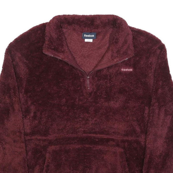 REEBOK Womens Maroon Jumper Plain 1/4 Zip Pullover XL Soft Polyester Comfort