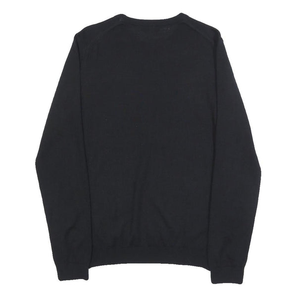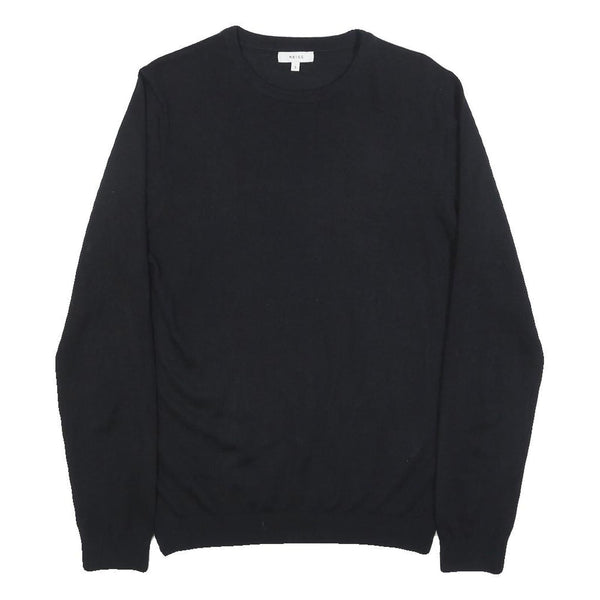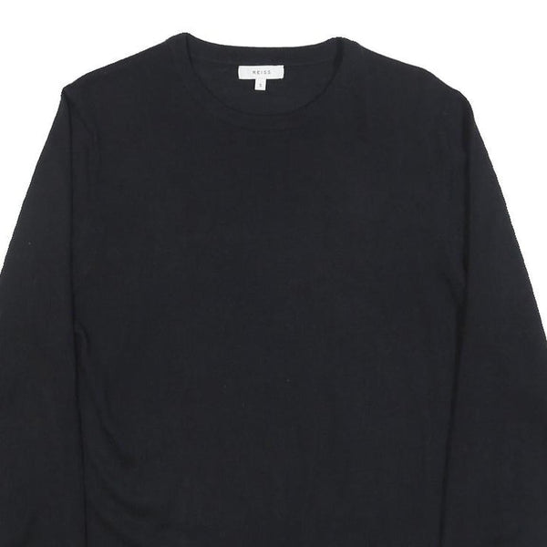REISS Mens Black Plain Pullover Jumper Crew Neck Basic Knit S Wool Blend