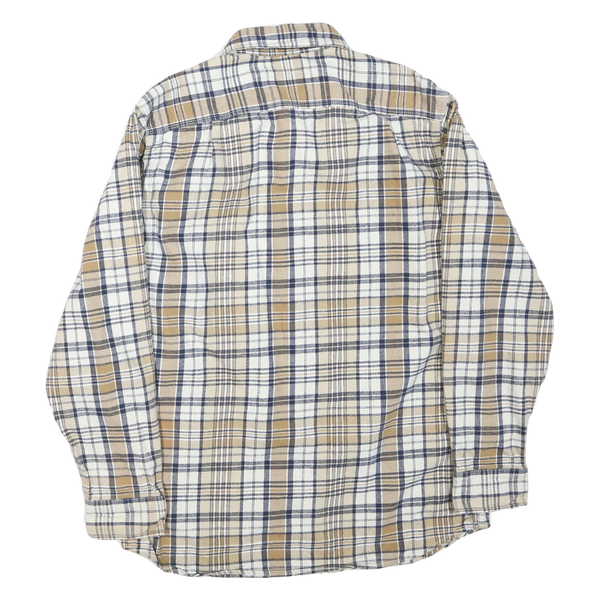 RIDGECUT Mens Beige & Blue Check Shirt M Long Sleeve Button Collar Casual Cotton