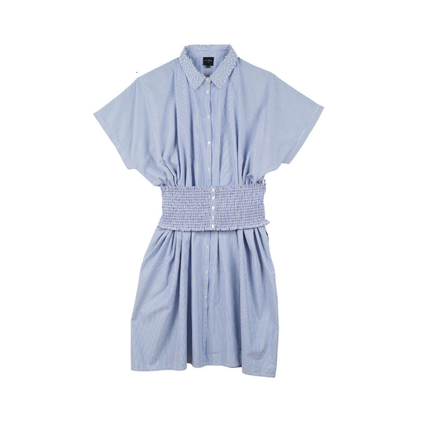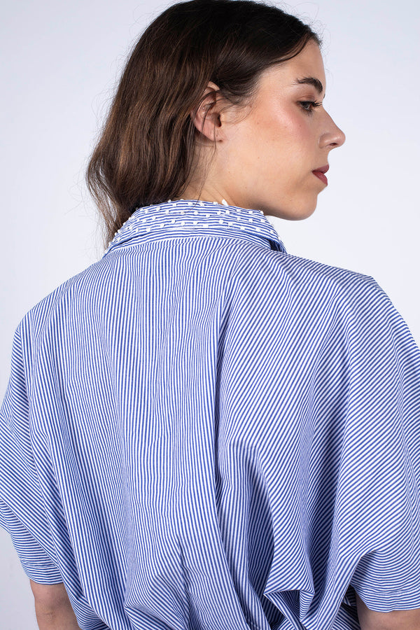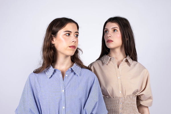 The blue Glam dress is this summer's must-have piece: one dress for 6 looks. Its super trendy blue color will highlight all skin tones. Its collar is decorated with French knots embroidered by hand. This creation gives you the opportunity to swap, layer, and create your personalized seasonal look. The blue Glam dress pairs with a belt/top, which you can wear under or over the dress: fitted for a very feminine look or loose for a trendy oversized look. Additionally, the dress and top can also be worn separately to create even more summer look possibilities.