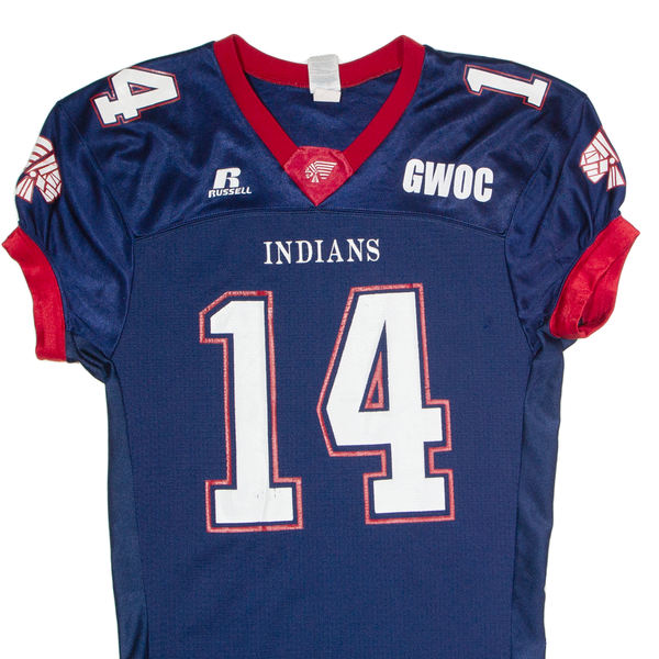 RUSSELL ATHLETIC Indians #14 American Football Mens Jersey Blue USA V-Neck M