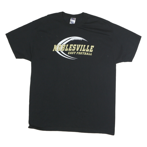 RUSSELL ATHLETIC Mens Black Noblesville East Football Graphic T-Shirt L Short