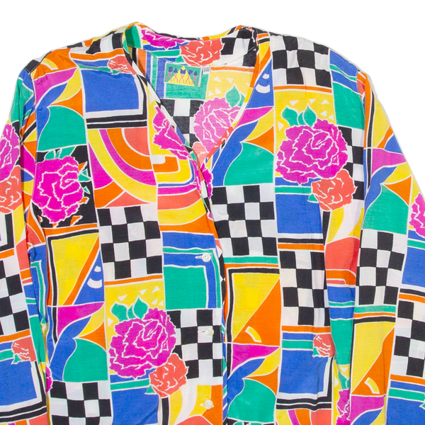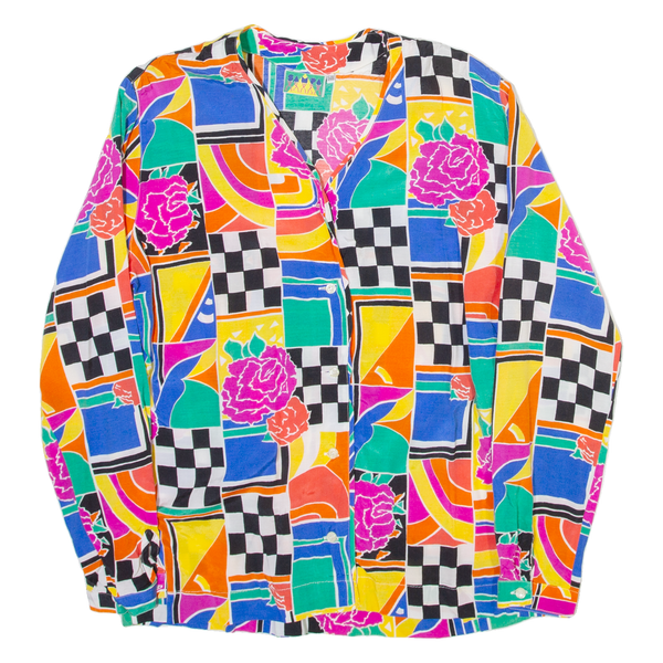 SAMPA Womens Printed Blouse Blue V-Neck Long Sleeve Crazy Pattern M