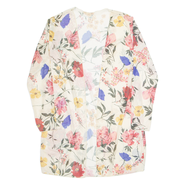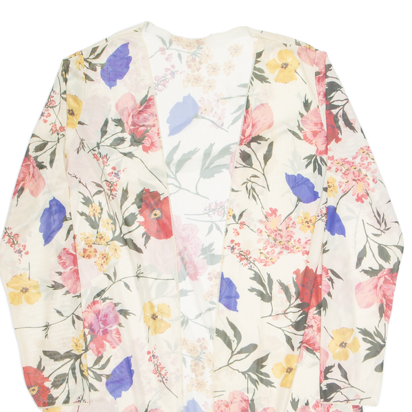 Home Sheer Womens Kimono Top Cream Long Sleeve Floral S