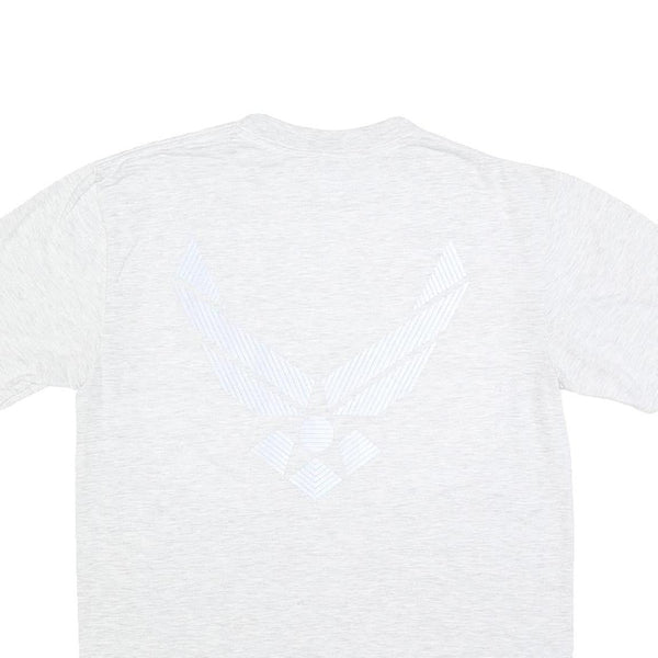 This Mens SOFFE T-shirt is presented in a subtle grey shade with a soft heather effect. It features the U.S. Air Force emblem in a white graphic print positioned on the front left chest and a large matching emblem design on the back, adding a distinctive military-inspired style.