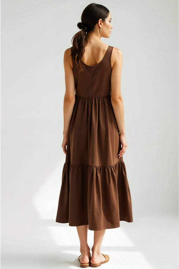 Studio Amala Earthy Mocha Brown Cotton Tiered Midi Dress