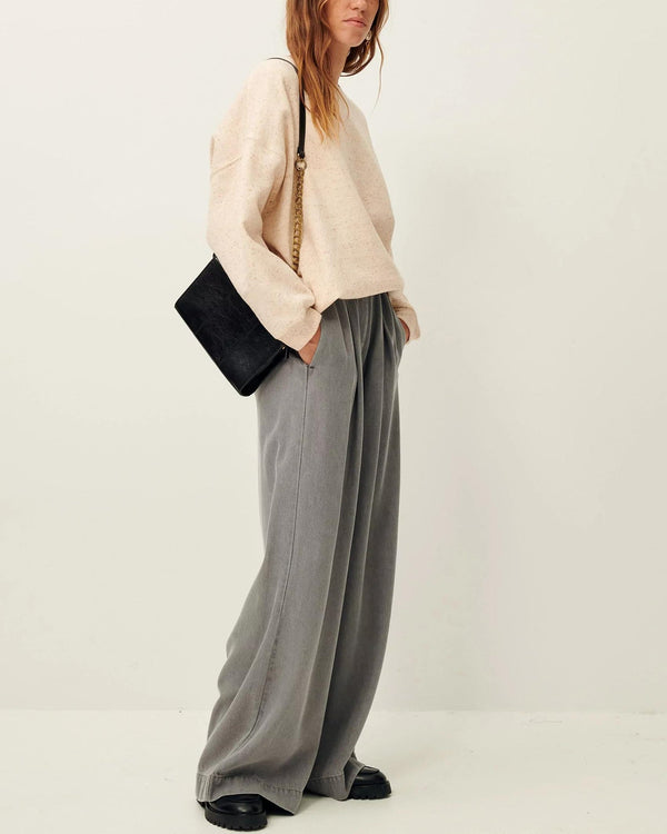 Oversized sweatshirt in buttoned mottled fleece knitted in Portugal.