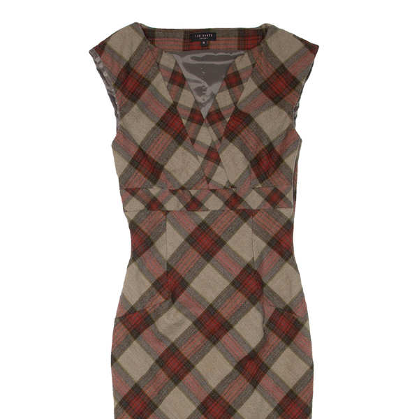 TED BAKER Womens Pencil Dress Grey Wool Check Sleeveless Knee Length XXS