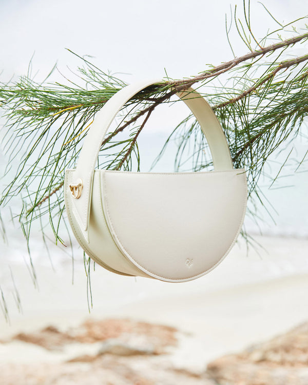 An elegant mini bag to hold all your essentials, The O.N.E. signature bag features a round hand bag with detachable 4cm wide shoulder straps for two way styling. The handle position can be adjusted up to 180 degrees to convert the bag to a semi-circle shaped bag to fit a variety of styles.