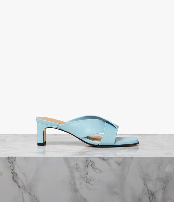 Composed with either a 50mm block or sculpted heel, two minimalist straps cross the upper further back than usual to both keep your foot secure and for increased support. Pair with your favorite warm-weather essentials for an instantly elevated look