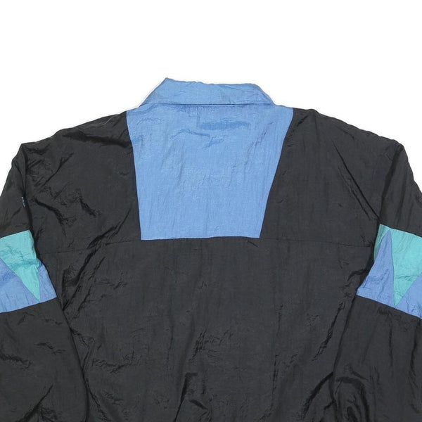 TODD1 Mens Black & Blue Nylon Zip Jacket 2XL Retro Geometric Pattern Lightweight