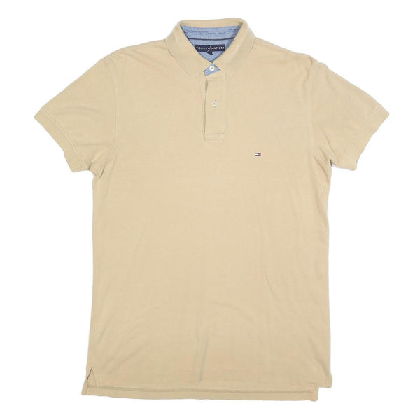 TOMMY HILFIGER Mens Beige Cotton Blend Short Sleeve Polo Shirt M Classic Fit