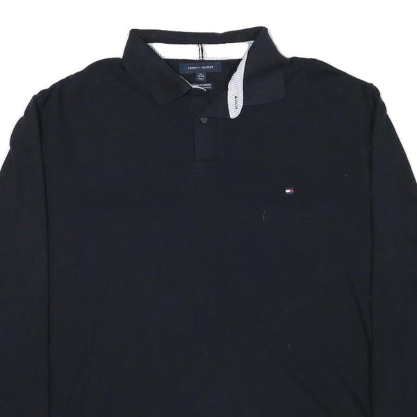 TOMMY HILFIGER Mens Black Long Sleeve Plain XL Cotton Blend Polo Shirt