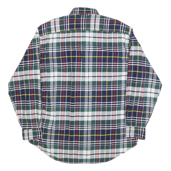 TOMMY HILFIGER Mens Green & Navy Check Shirt M Button Down Long Sleeve Cotton