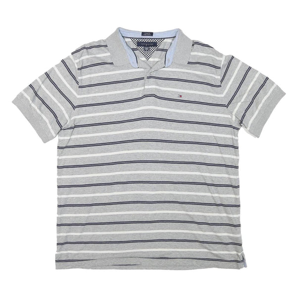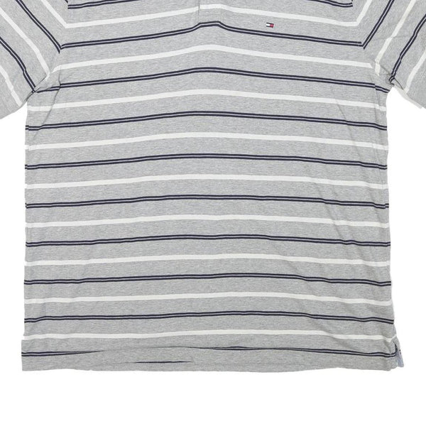 TOMMY HILFIGER Mens Grey & White Striped Short Sleeve Polo Shirt 2XL Cotton