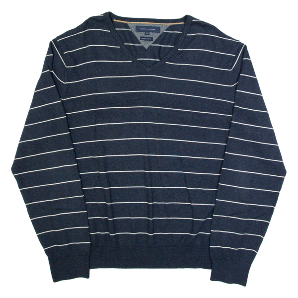 TOMMY HILFIGER Mens Patterned Jumper Blue Striped Tight Knit 2XL