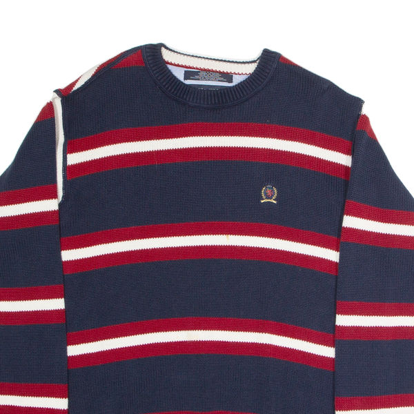 TOMMY HILFIGER Mens Patterned Jumper Blue Striped Tight Knit M