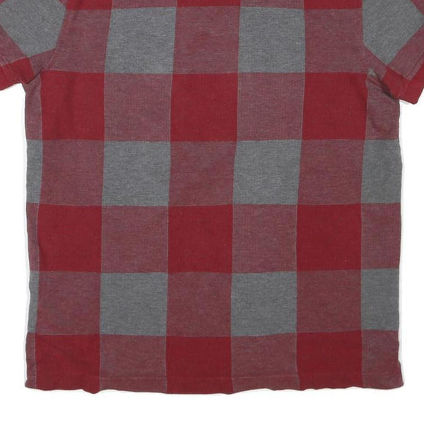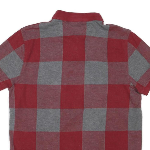 TOMMY HILFIGER Mens Red & Grey Check Short Sleeve Polo Shirt M Cotton Blend