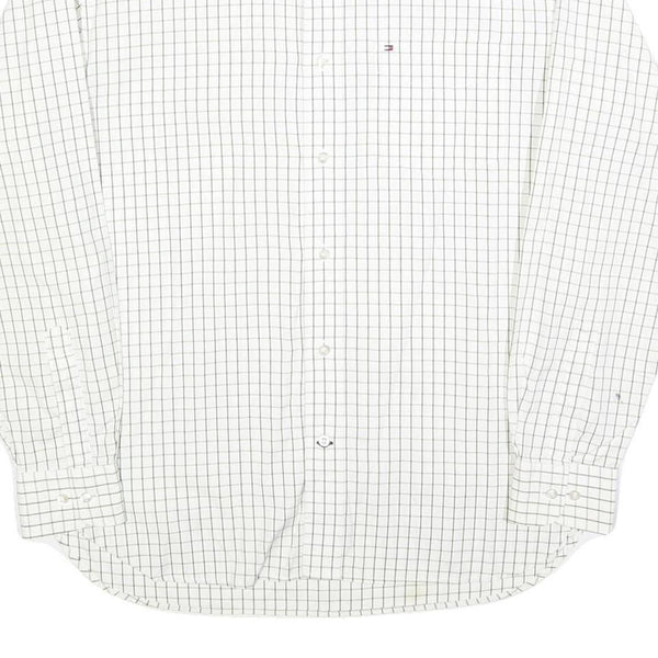 TOMMY HILFIGER Mens White & Black Checked Shirt S Classic Cotton Long Sleeve