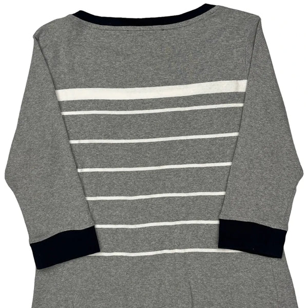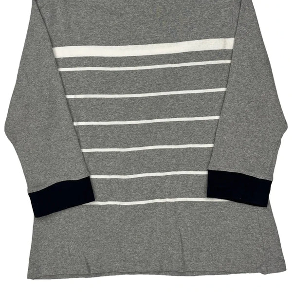 Gray Long Sleeve T-Shirt With White Stripes And Navy Accents