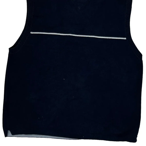 Navy Blue Sweater Vest With White Stripe Detail