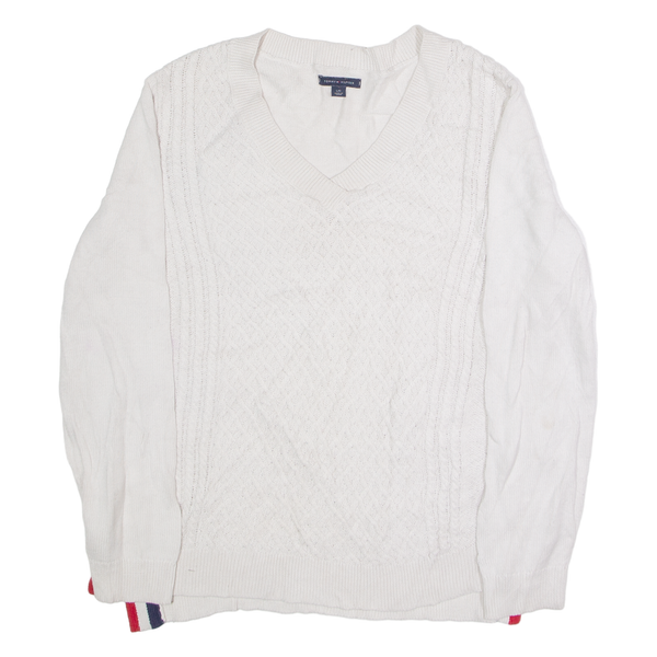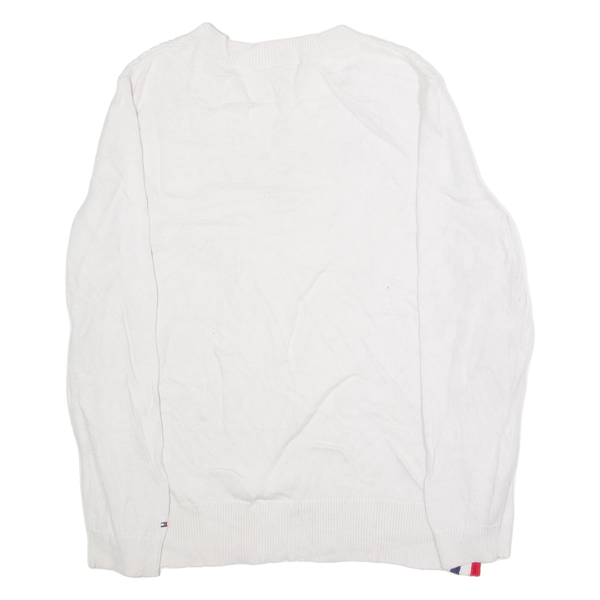 TOMMY HILFIGER Womens Jumper White Crew Neck Cable Knit L