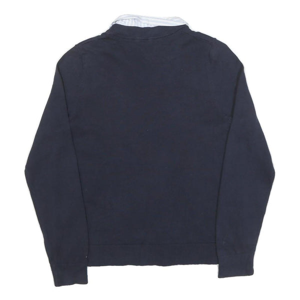 TOMMY HILFIGER Womens Navy Plain Jumper V-Neck Basic Knit M Cotton Blend