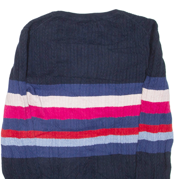 TOMMY HILFIGER Womens Patterned Jumper Blue Striped Cable Knit M