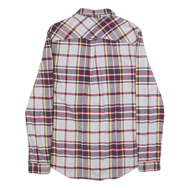 TOMMY JEANS Mens White & Navy Check Shirt M Cotton Long Sleeve Button Pocket