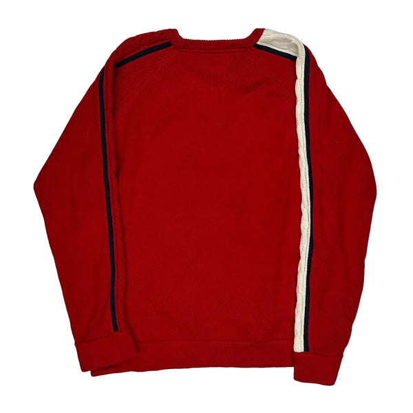 Red Long Sleeve T-Shirt With Stripes On Sleeves, Minor Marks On Front