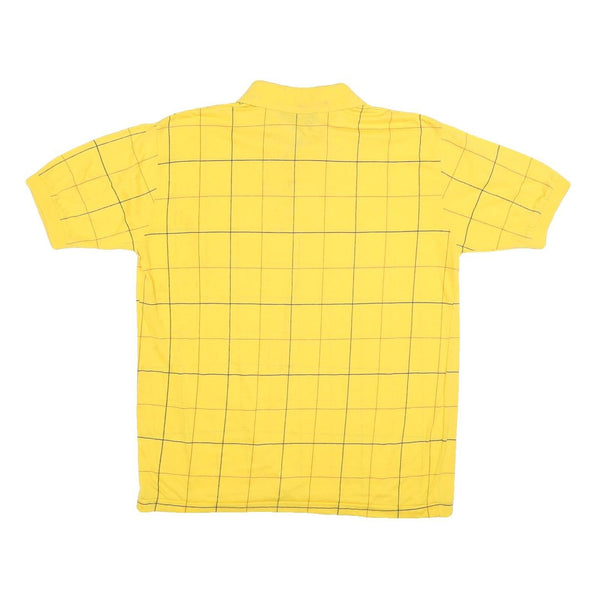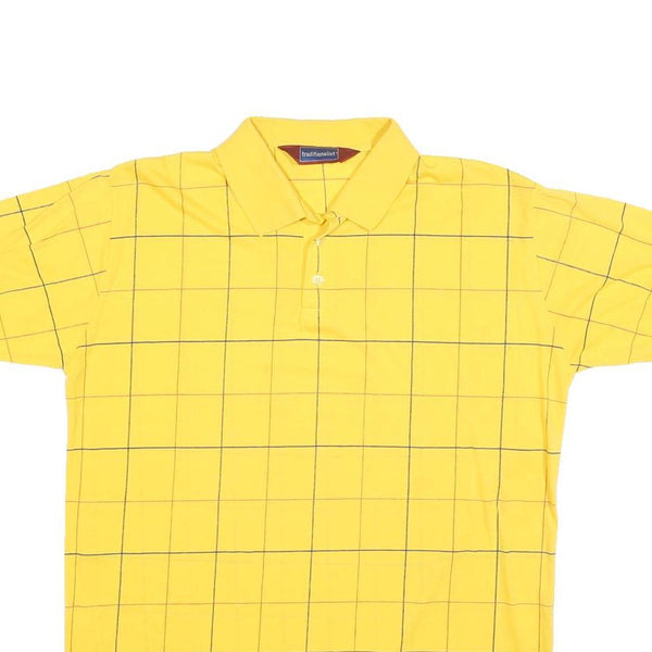 TRADITIONALIST Mens Yellow Check Short Sleeve Polo Shirt L Cotton Blend Casual