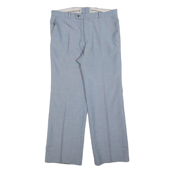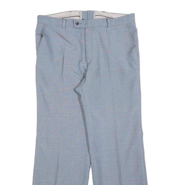 TREVIRA Mens Wool Blend Light Blue Regular Fit Straight Leg Trousers W34 L30
