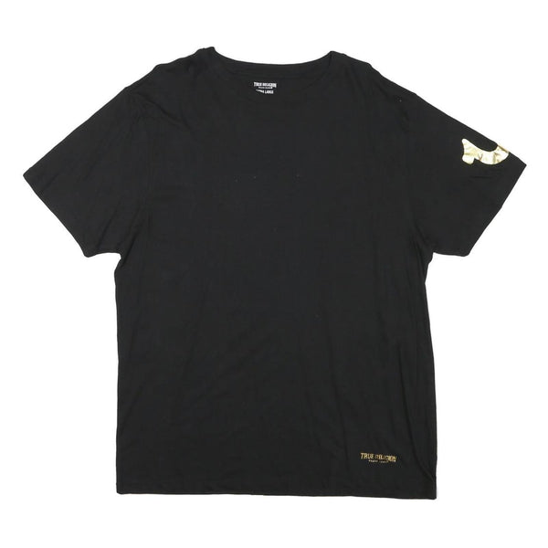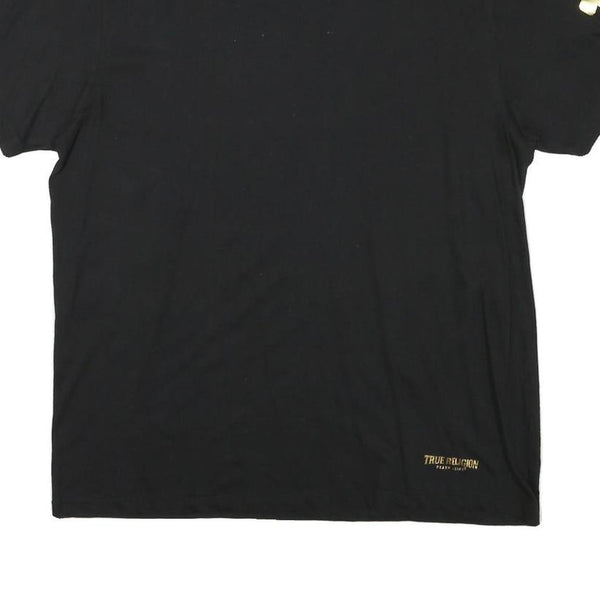 TRUE RELIGION Mens Black T-Shirt XL Short Sleeve Crew Neck Gold Logo
