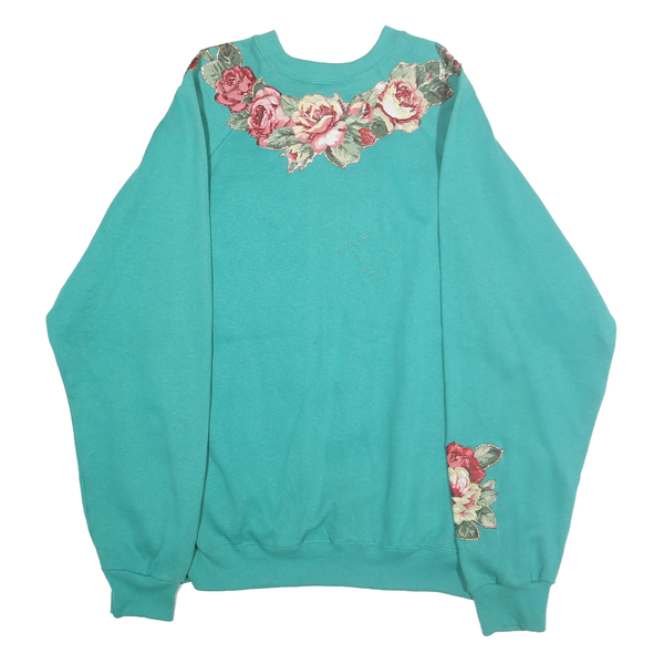 TULTEX Womens Turquoise Blue Cotton Blend Crew Neck XL Floral Sweatshirt