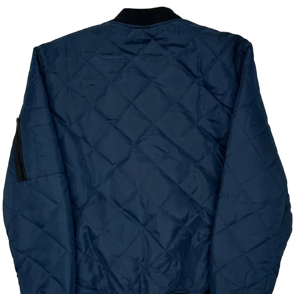 Navy Quilted Bomber Jacket With Black Cuffs And Collar