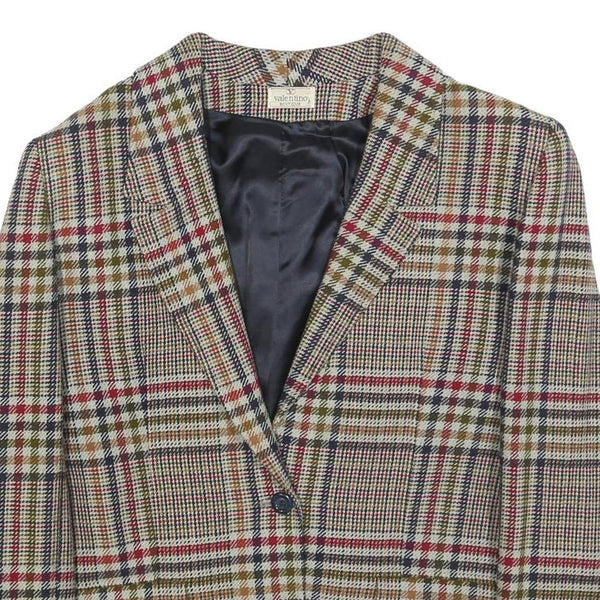 Valentino womens red beige check blazer l woven button jacket classic tailored