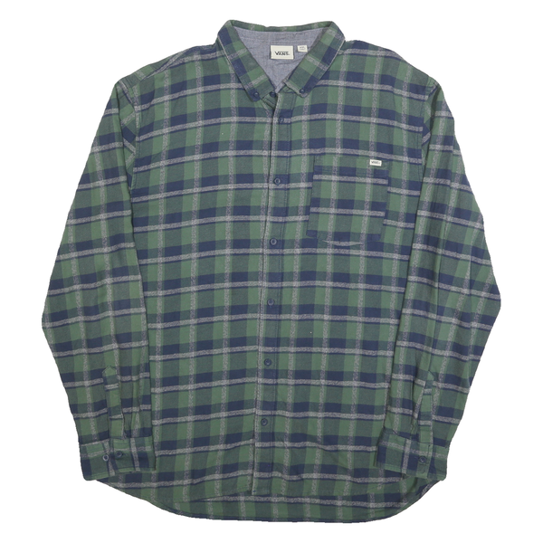 VANS Mens Green & Blue Check Shirt 2XL Cotton Blend Casual Button-Down Long