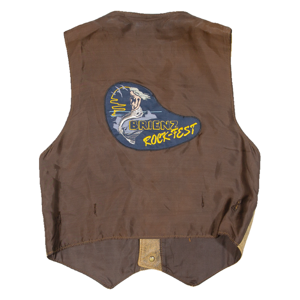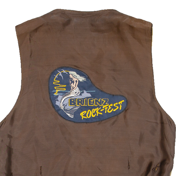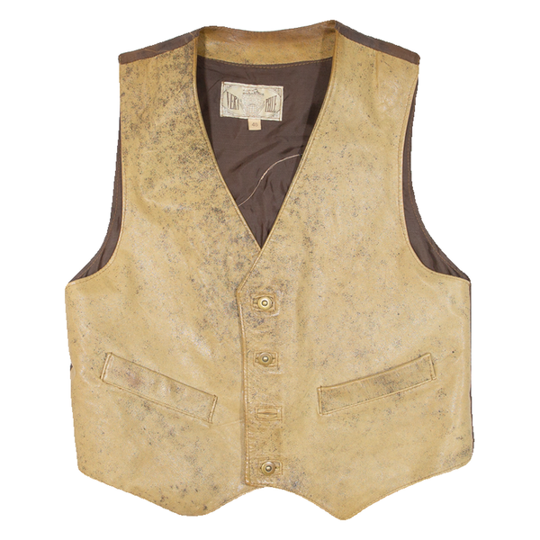 VERA PELLE Mens Biker Waistcoat Brown Faux Leather L