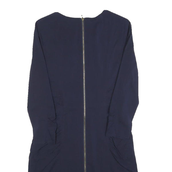 WHISTLES Womens Navy Blue Day Dress Silk Blend Plain Long Sleeve Knee Length UK
