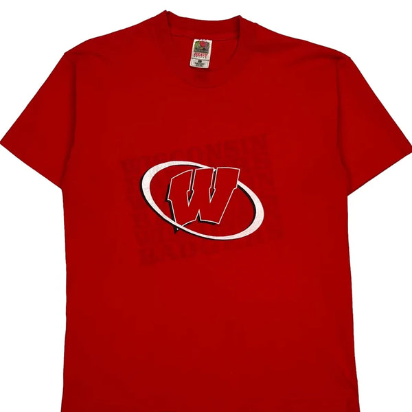 Single stitch wisconsin badgers fruit of the loom college t-shirt - large red cotton