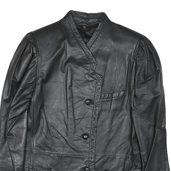Womens Black Leather Button Jacket XS Plain Stylish Classic Fit Soft