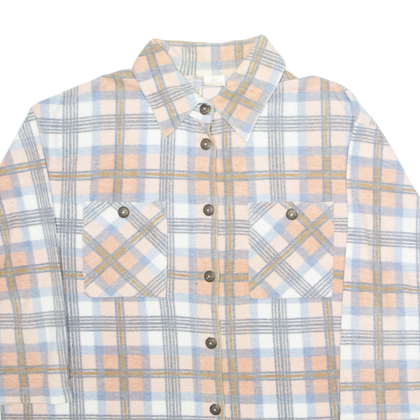 Womens flannel shirt pink plaid 3/4 sleeve xl