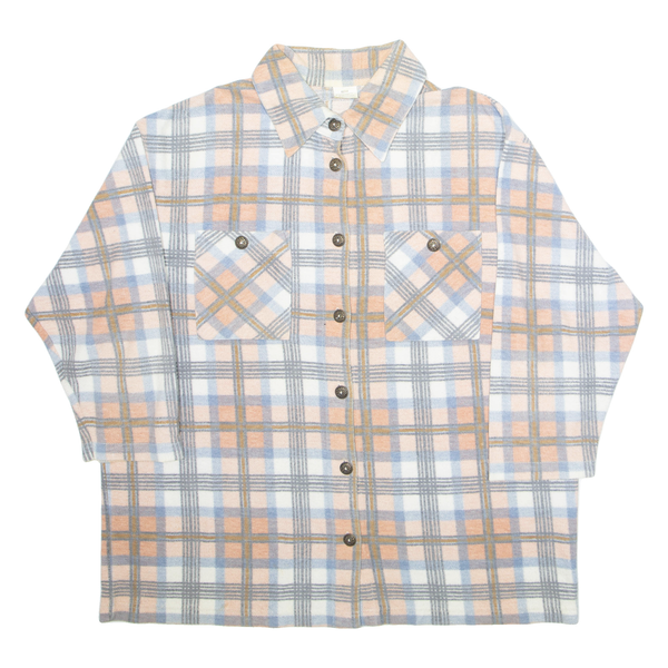 Home Womens Flannel Shirt Pink Plaid 3/4 Sleeve XL