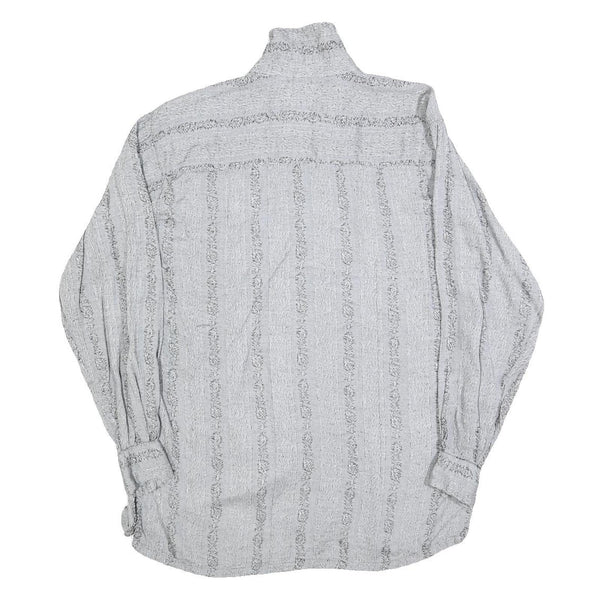 Womens Grey Striped Basic Shirt Long Sleeve Collared Size M Casual Everyday