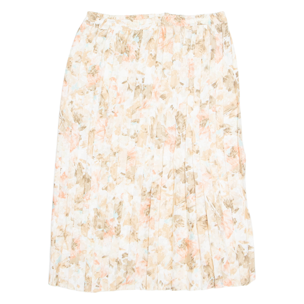 Womens Pleated Skirt Cream Knee Length Floral M